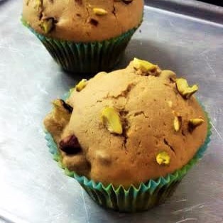 - Preheat oven to 170 degrees C). Get your muffin tray ready with the liners. Toast the pistachio for about a couple of minutes. Let cool and then chop coarsely.