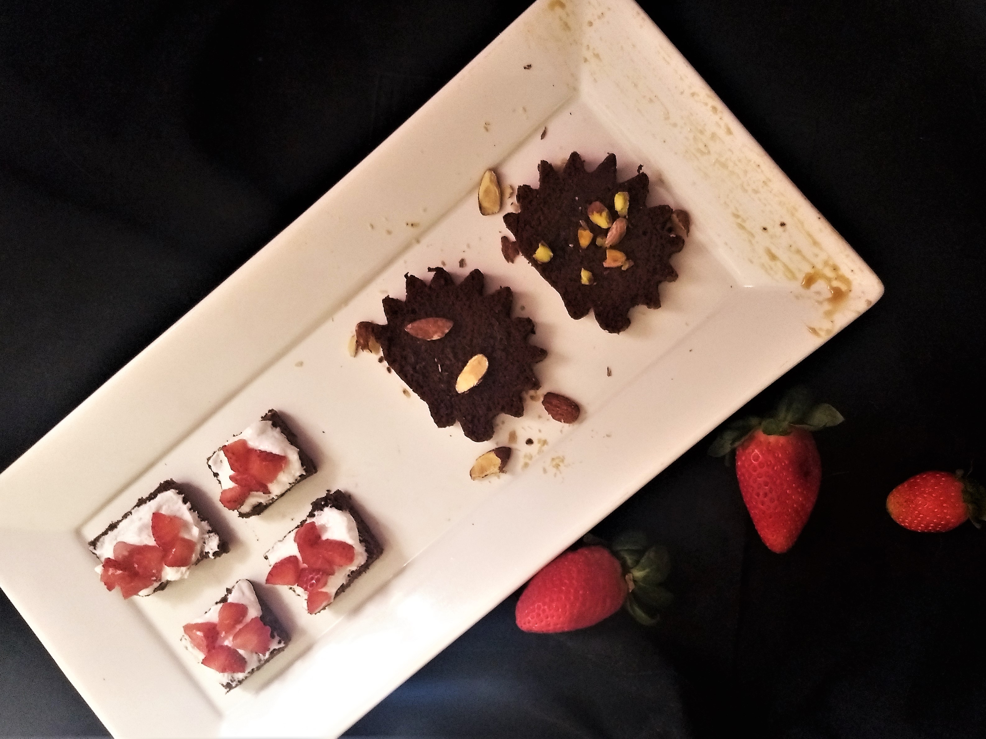 But it wasn’t rolling easily enough for me to make a Yule log or Swiss roll out of it. So I put that to use by making some mini desserts – you can keep them as simple as the ones on top which were brushed lightly with liquid jaggery and topped with crushed pistachios and almonds . Or go the exotic route of topping it with coconut cream and fresh strawberry.