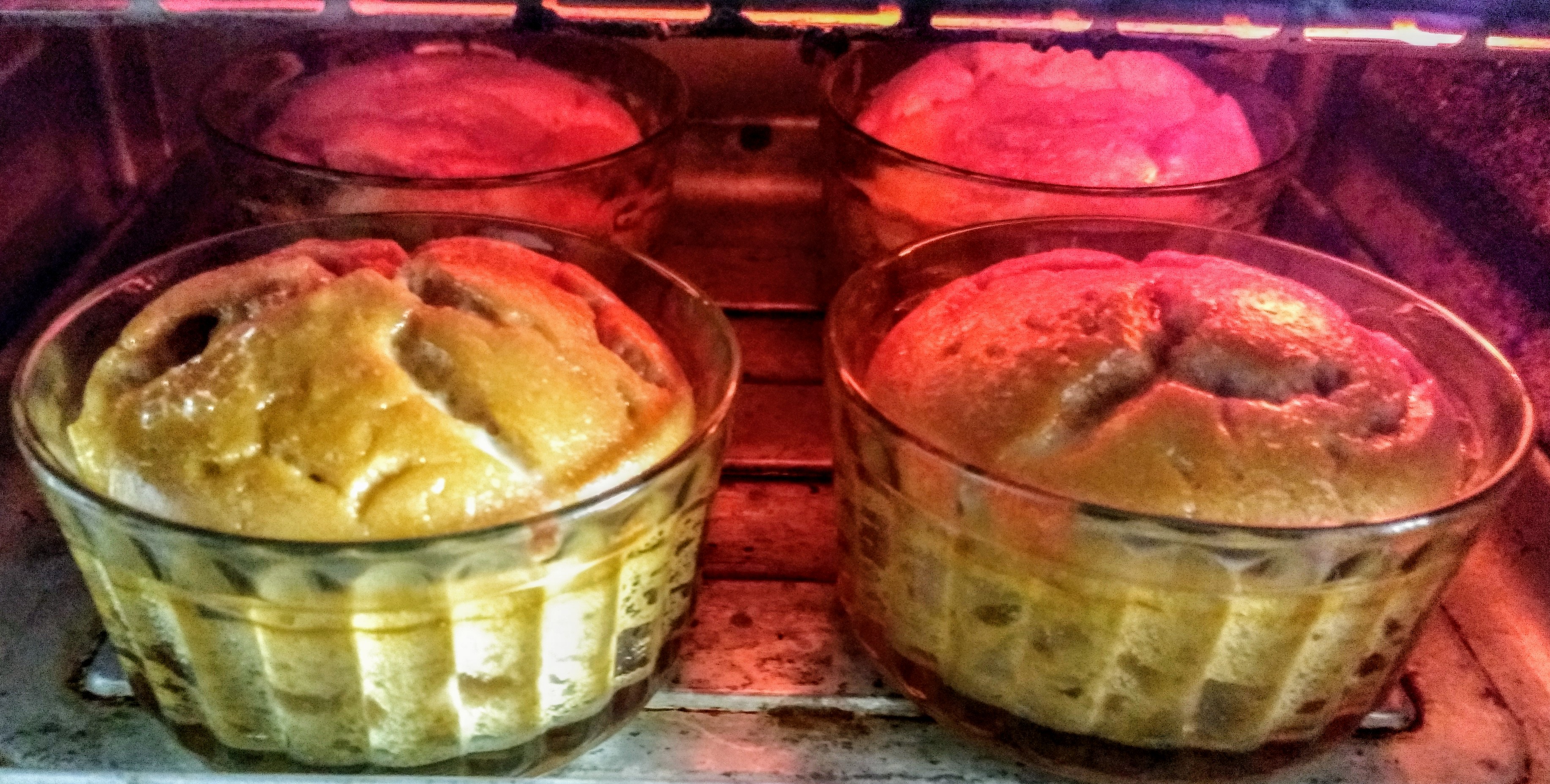 - Pour this mixture into the ramekins, filling only upto 3/4th of the ramekins.