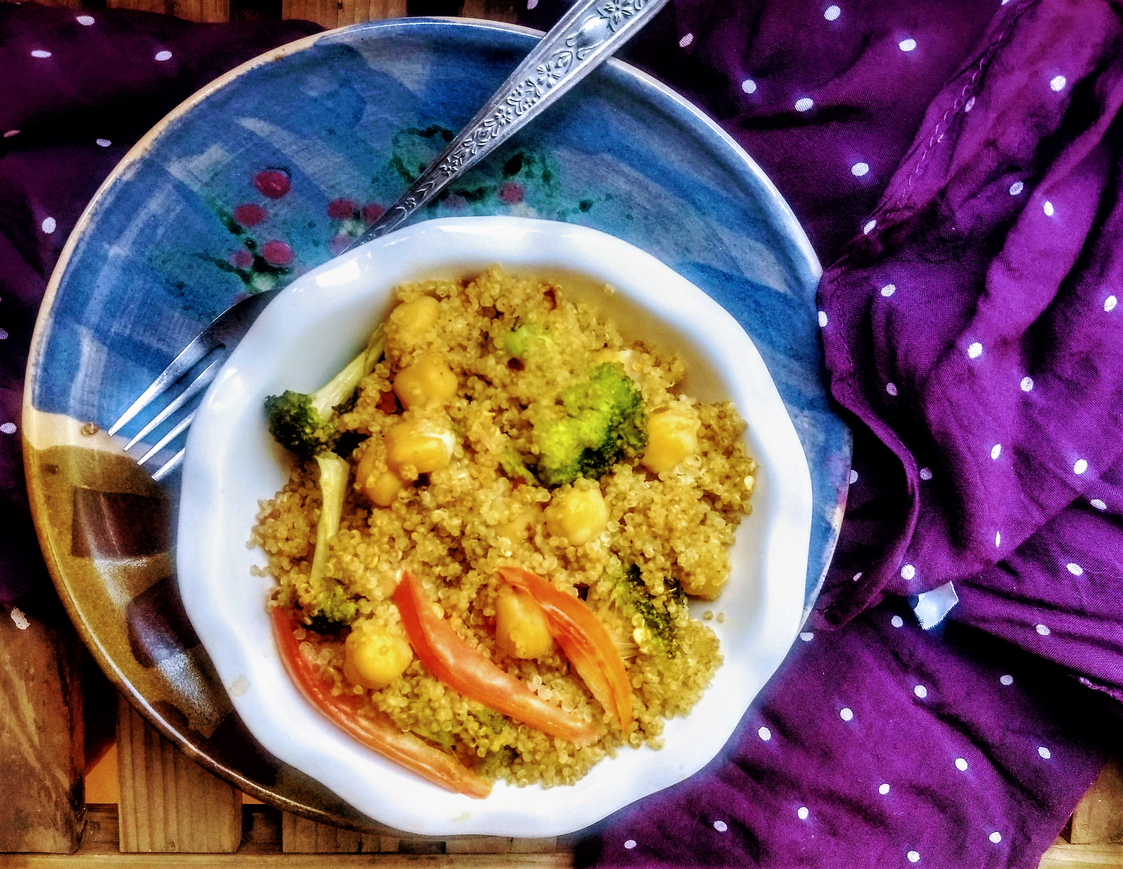 Method – Cook the quinoa in 1 1/2 cup of water. Fluffy with fork so that it is not sticky. Lightly saute the broccoli in the oil. Mix the cooked quinoa, boiled chickpeas, chopped broccoli and tomatoes in one big bowl. Add the herbs and salt to this. Mix the milk and cheese in a bowl. Pour this mix into the quinoa mix.