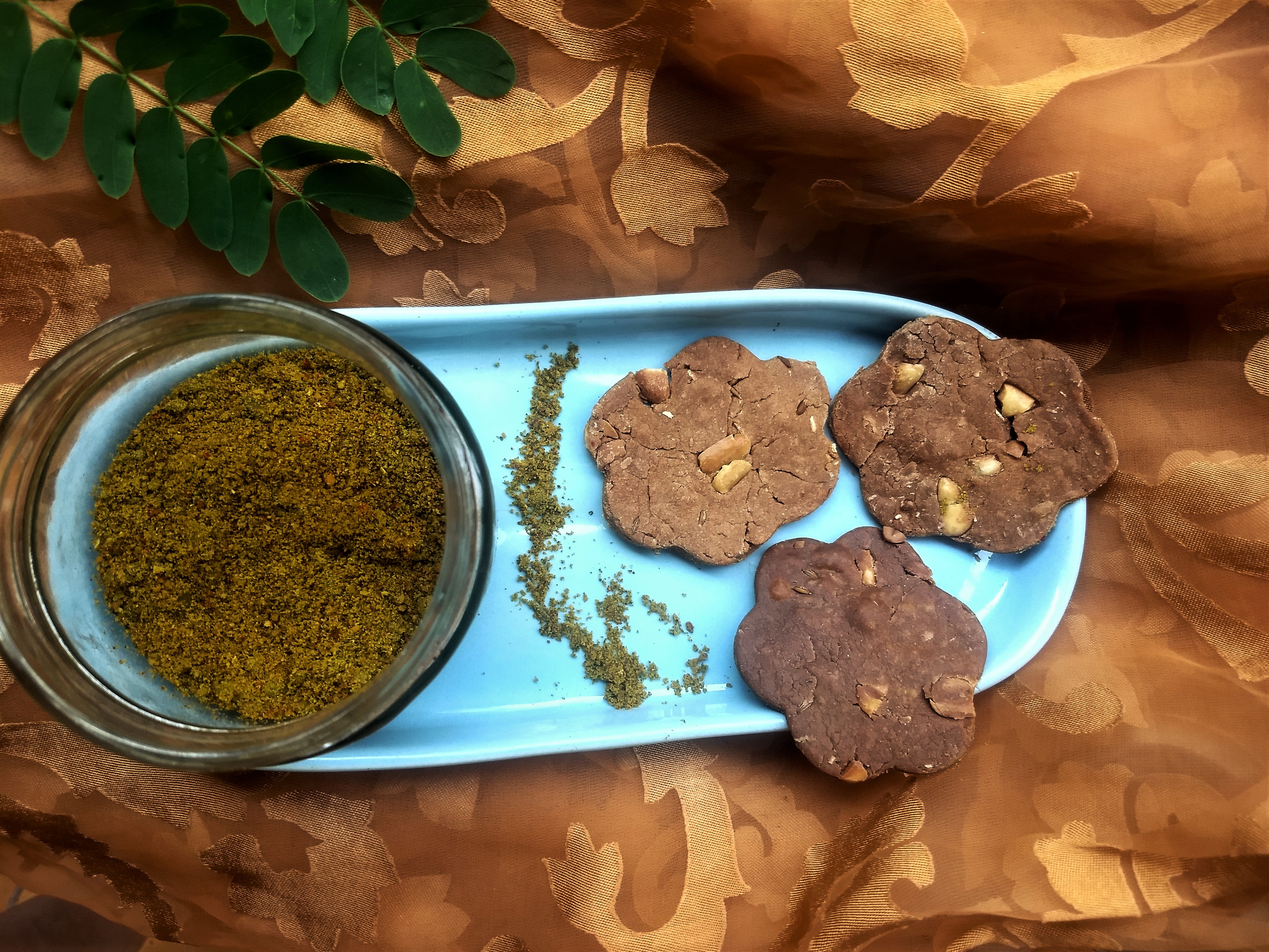 So I baked these Red Rice Mathris/Crackers using the homemade curry leaves powder, a few days ago. Both the flour and the powder are making an appearance on my healthy baking experiences for the first time.