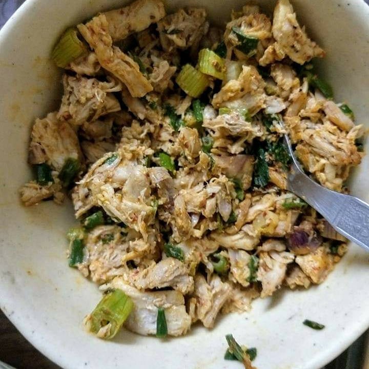 - Saute the chicken in the oil, add the spring onions, salt and Cajun spice mix.